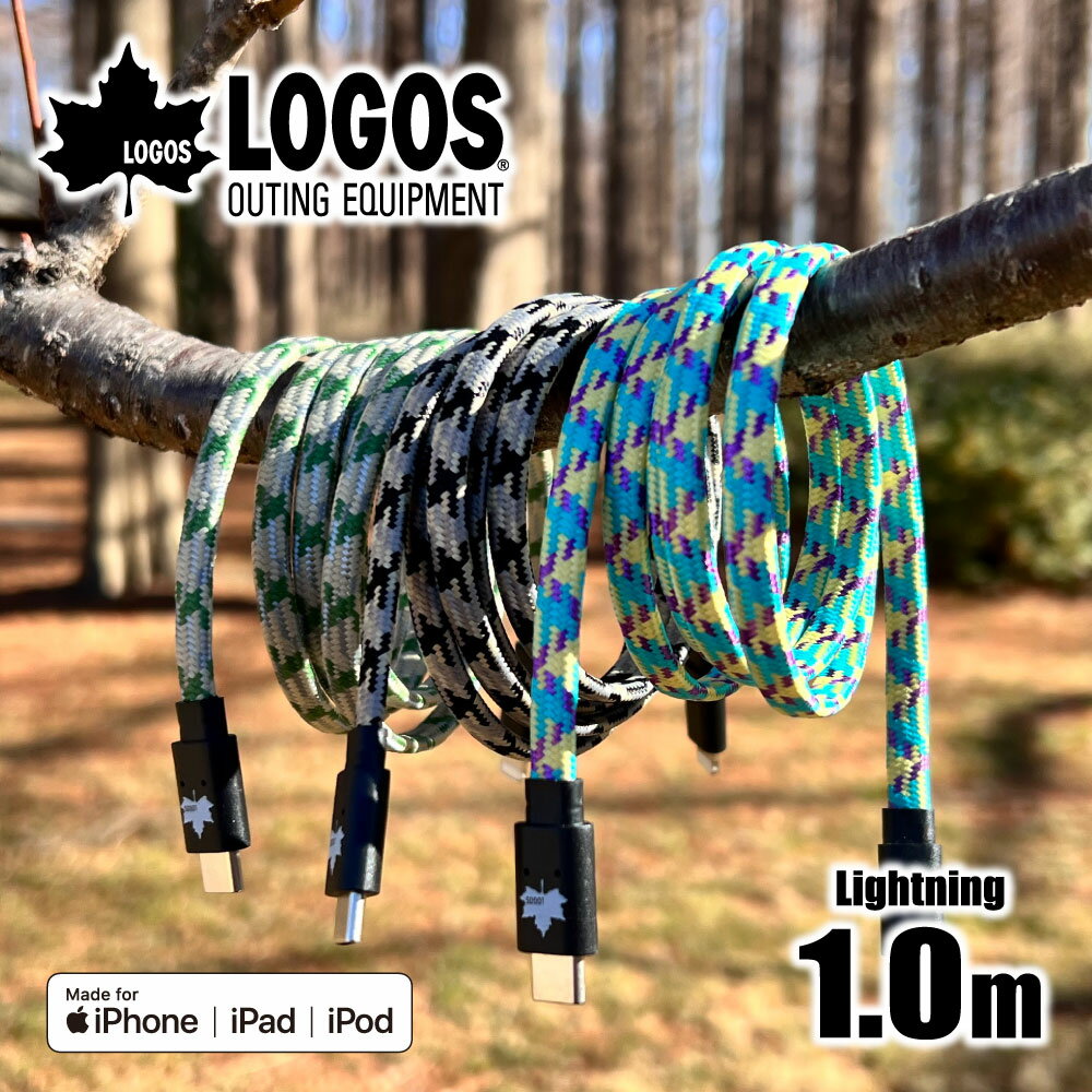 公式ショップLOGOS(ロゴス) 充電ケーブル 1.0m フラットタフ PD60W対応 iPhone ライトニング データ転送 480Mbps 編込みナイロン製 キャンプ アウトドア LG-H308CL10